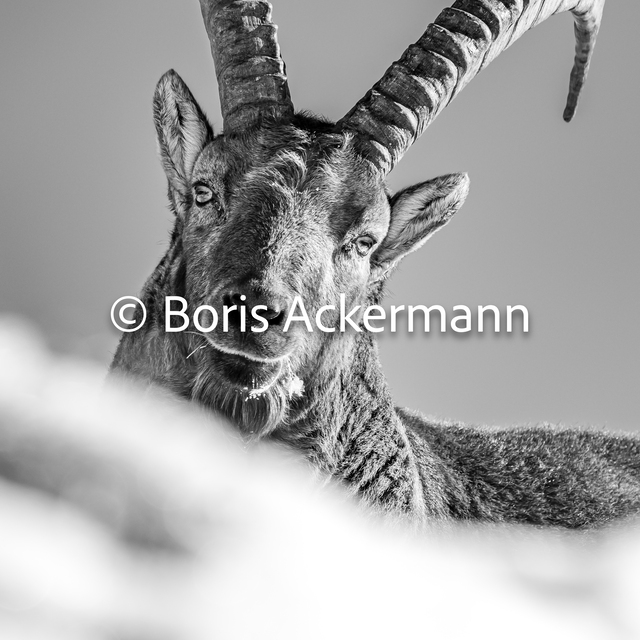 Der wunderschöne Alpensteinbock aufgenommen in Saas-Fee ihm 23.12.2025.