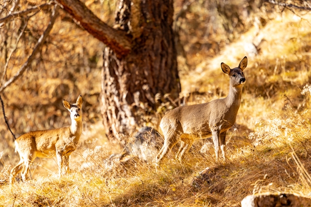 Rehe im Herbstwald.