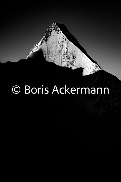 Die Reduktion auf Schwarz und Weiß lässt eine rohe, archaische Bildsprache entstehen – kein stilles Panorama, sondern ein dramatisches Zeugnis der alpinen Urgewalt, majestätisch und unerbittlich.