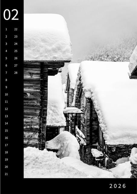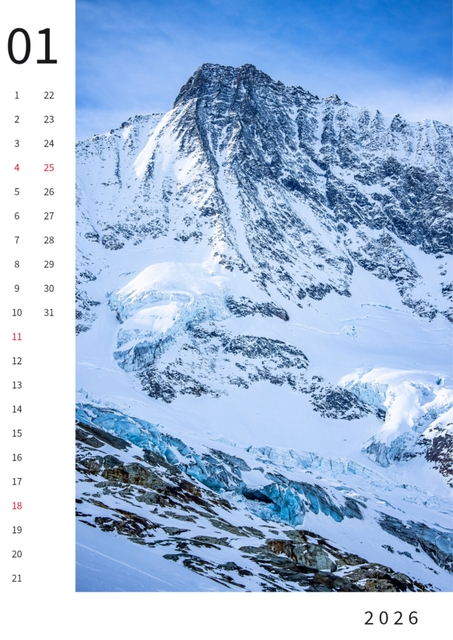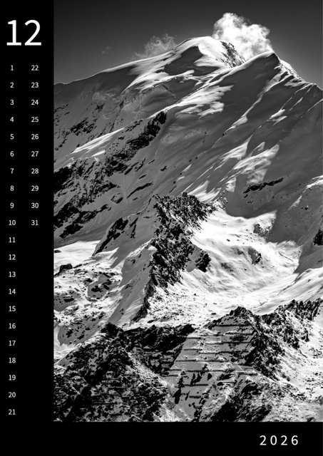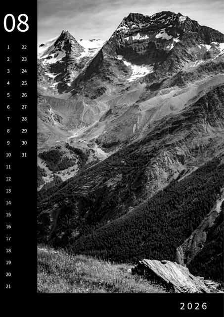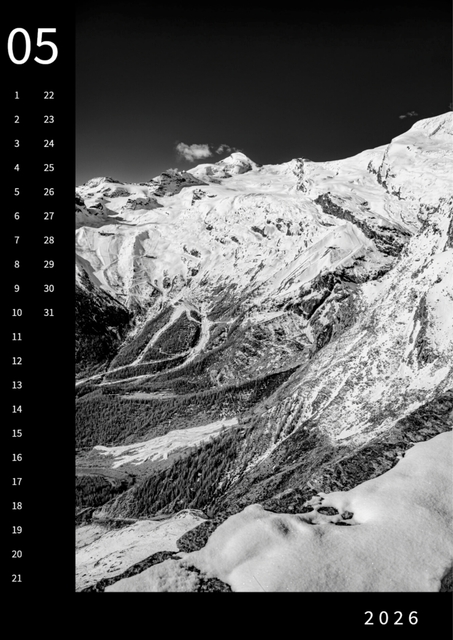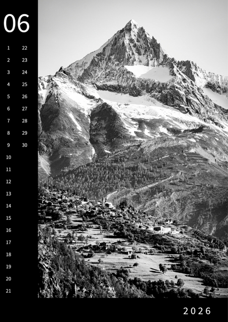 Monatskalender Saas-Fee 2026, DinA3, SW