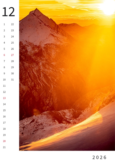 12 Monatsansichten und ein wunderschönes Deckblatt auf hochwertigem Fotopapier.