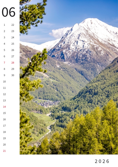 Monatskalender Saas-Fee 2026, DinA3, Farbe